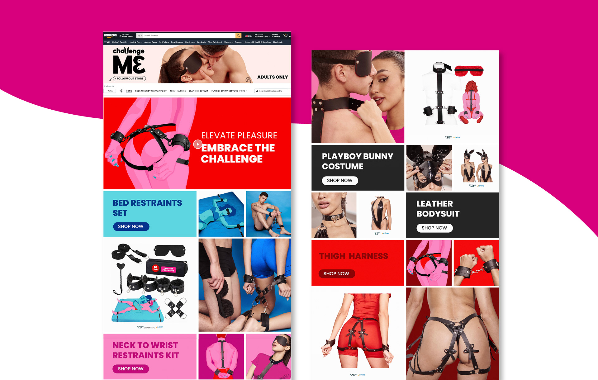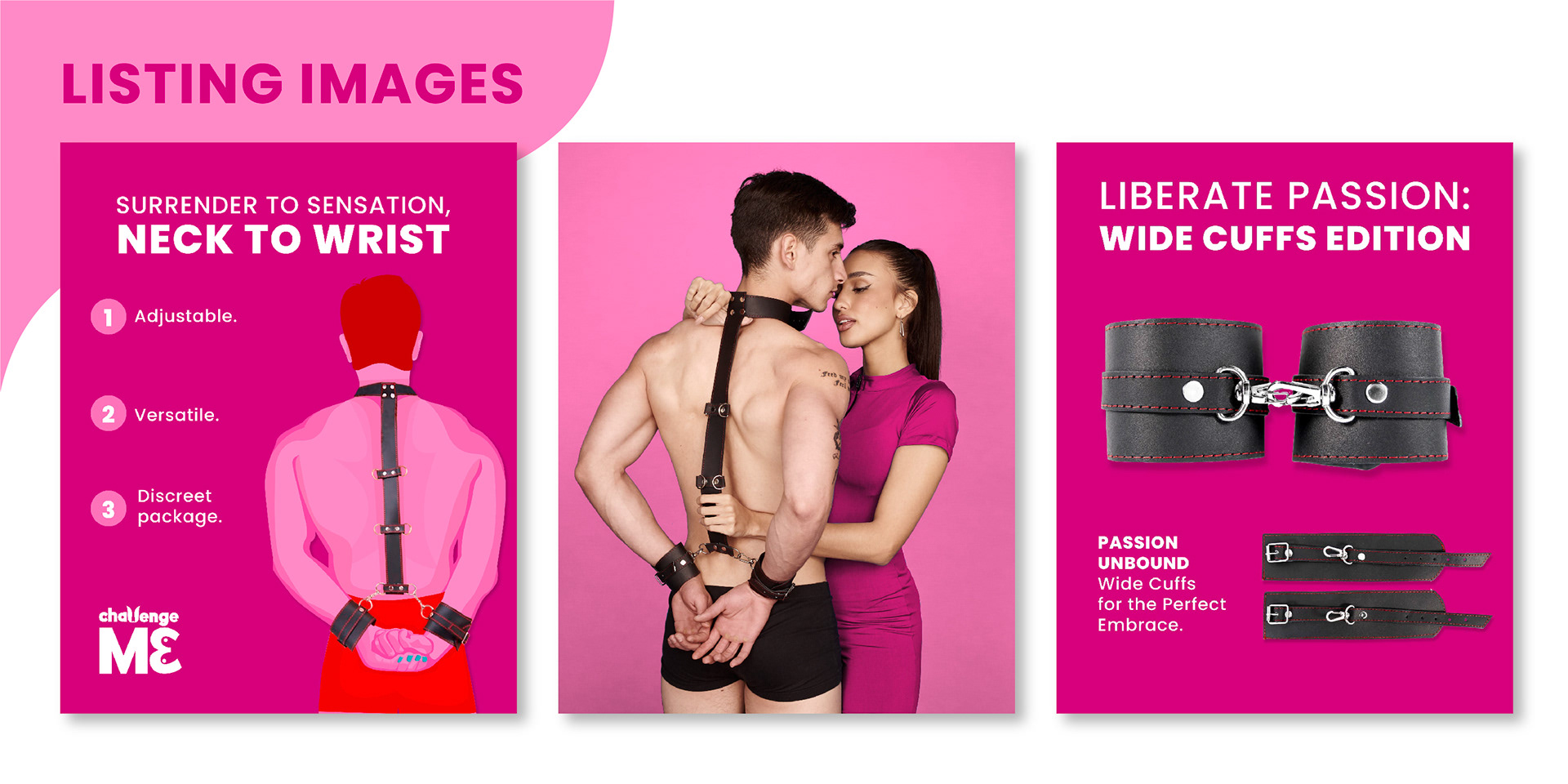 "Challenge Me" is an exciting branding project encompassing a brand of intimate products designed for exploration and fun in the world of BDSM for beginners. Over several months, we have worked closely with the "Challenge Me" team to develop a vibrant and captivating visual identity that reflects the essence of the brand and its commitment to connection, fun, and intimacy. From logo creation and color palettes to packaging design and promotional materials, every aspect of the branding has been carefully considered to convey the energy and excitement of the brand. Our goal has been to create a unique visual experience that invites users to explore and immerse themselves in the world of "Challenge Me", where each product is an invitation to challenge norms and discover new ways of connection and pleasure. This project is the result of a passionate and creative collaboration between our team and the "Challenge Me" team, and we are thrilled to share it with the design community.